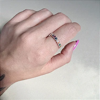 Descubra a sofisticação e alegria com nosso Anel com Zircônias Coloridas.